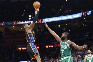 本赛季,布朗场均29.5分6.4篮板5助攻,投篮命中率49.5%;亚历山大场均31.9分4.5篮板6.4助攻,投篮命中率54.7%。