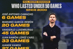 体育资讯1月13日讯 皇马已经官宣解雇阿隆索,数据统计显示,他也是新世纪皇马第10位执教未达50场的正式主帅。